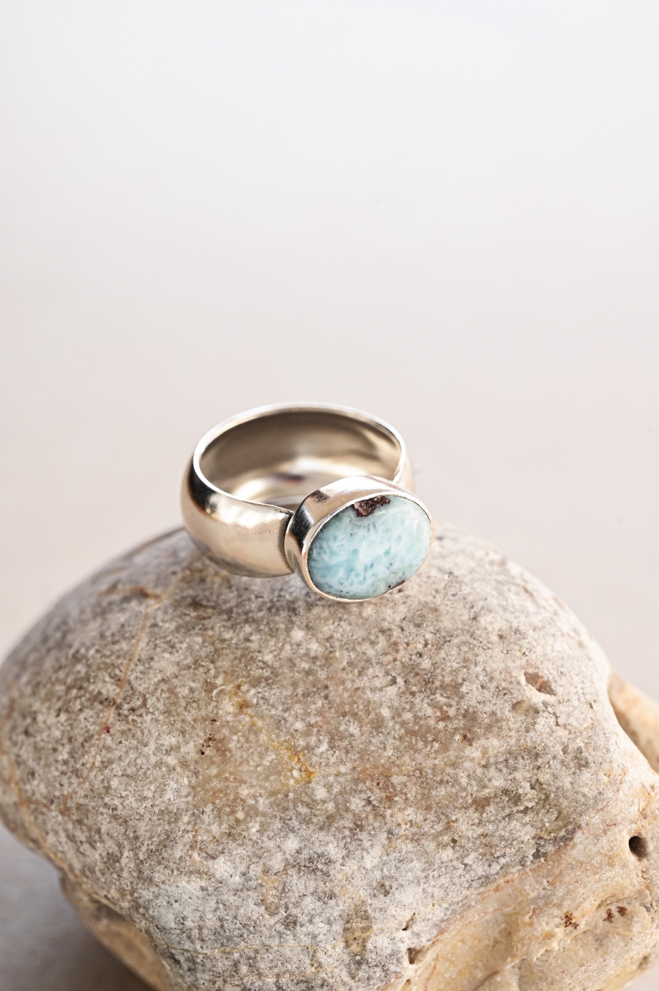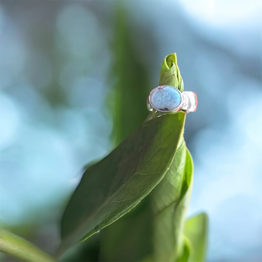 Το δαχτυλίδι είναι κατασκευασμένο από ασήμι 925 και ένα οβάλ λάριμαρ 10×12 χιλ.