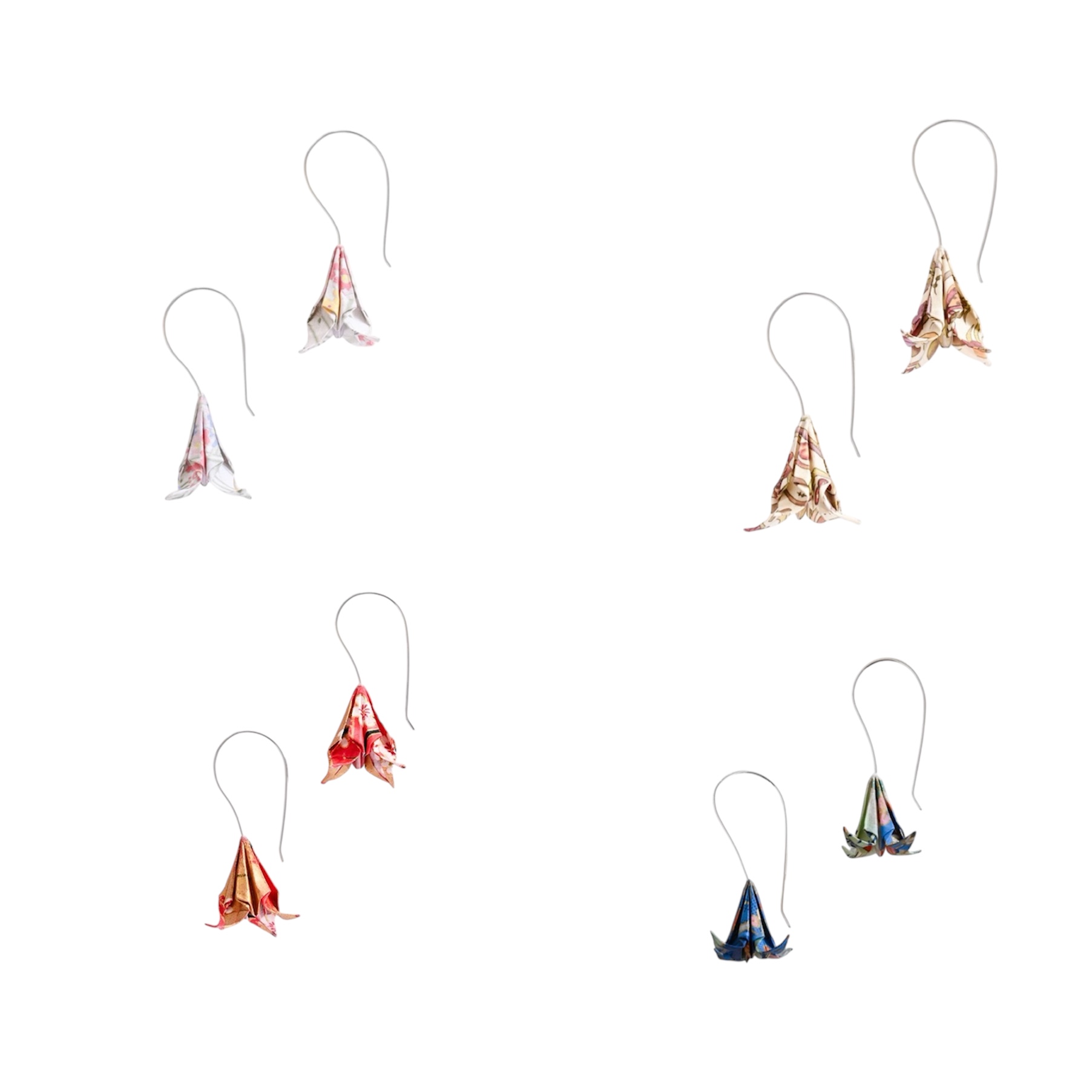 Κάθε σκουλαρίκι είναι κατασκευασμένο από έξι μεμονωμένα κομμάτια χαρτιού, διπλωμένα μεταξύ τους και επικαλυμμένα με ένα ακρυλικό γυαλιστερό υλικό για πρόσθετη αντοχή και αδιαβροχοποίηση.
